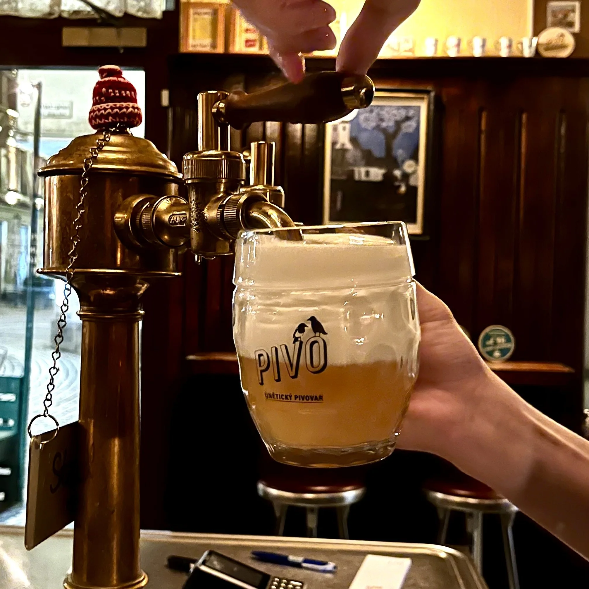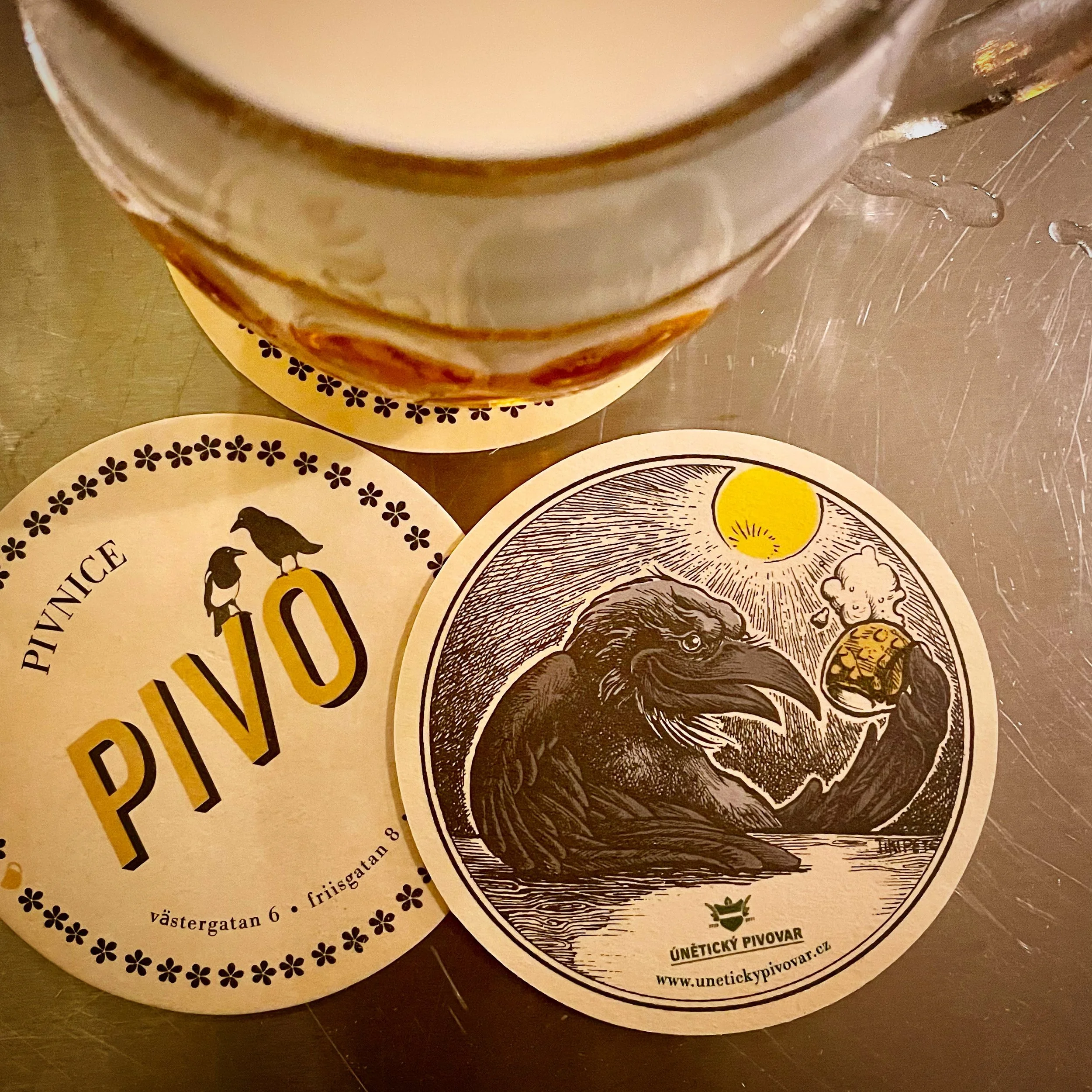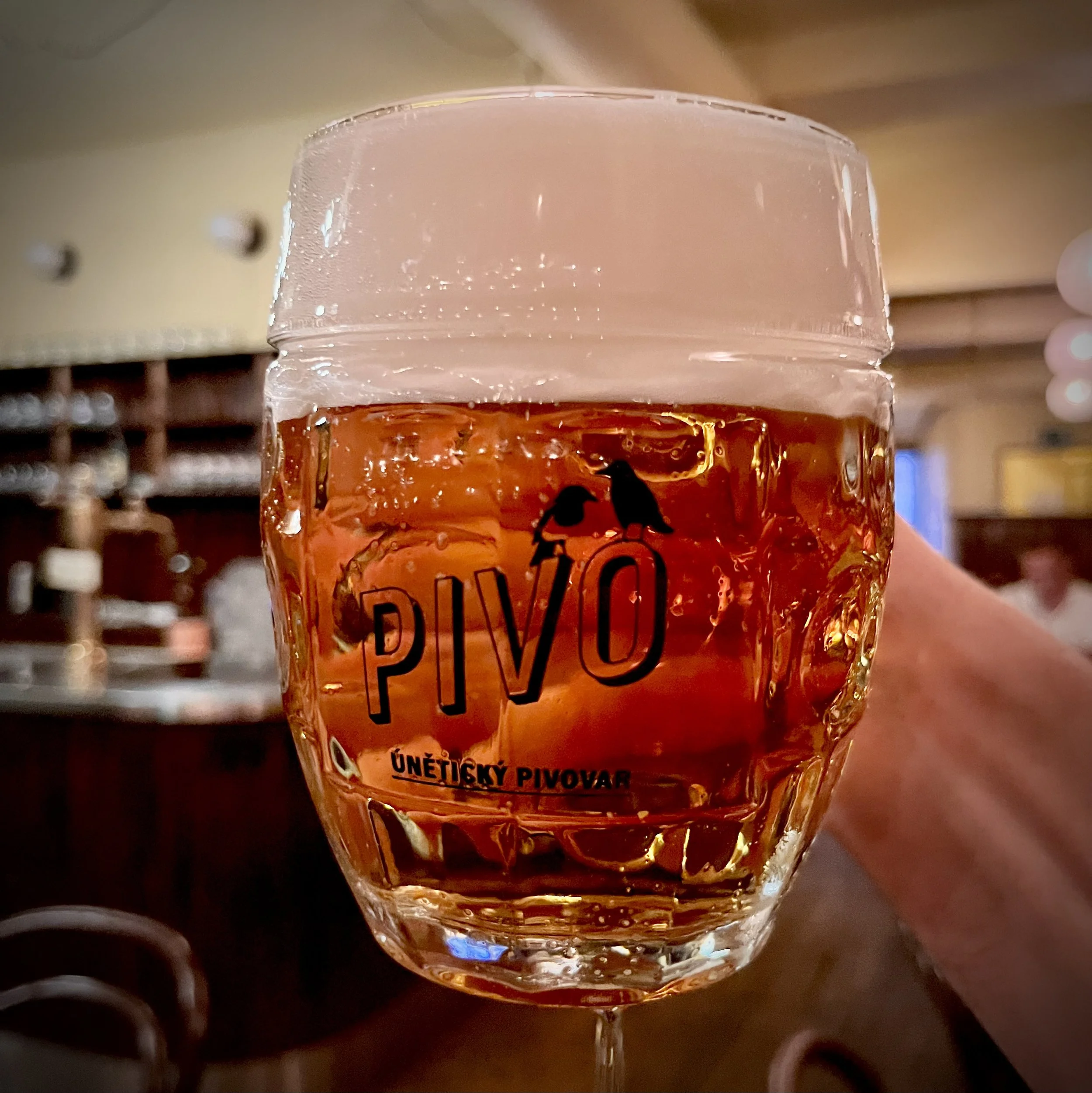 Vi importerar och serverar en traditionell opastöriserad tjeckisk pilsner från Únětický Pivovar strax utanför Prag.